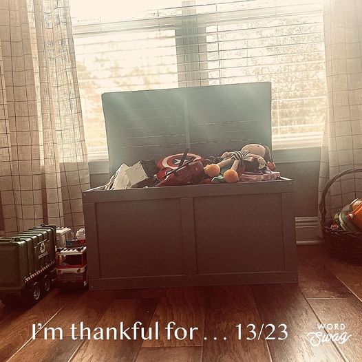This is a tough one but I am thankful for . . . the toys . . . the toys that often get strewn across the floor a huge stresser but that means happy, healthy kids live here