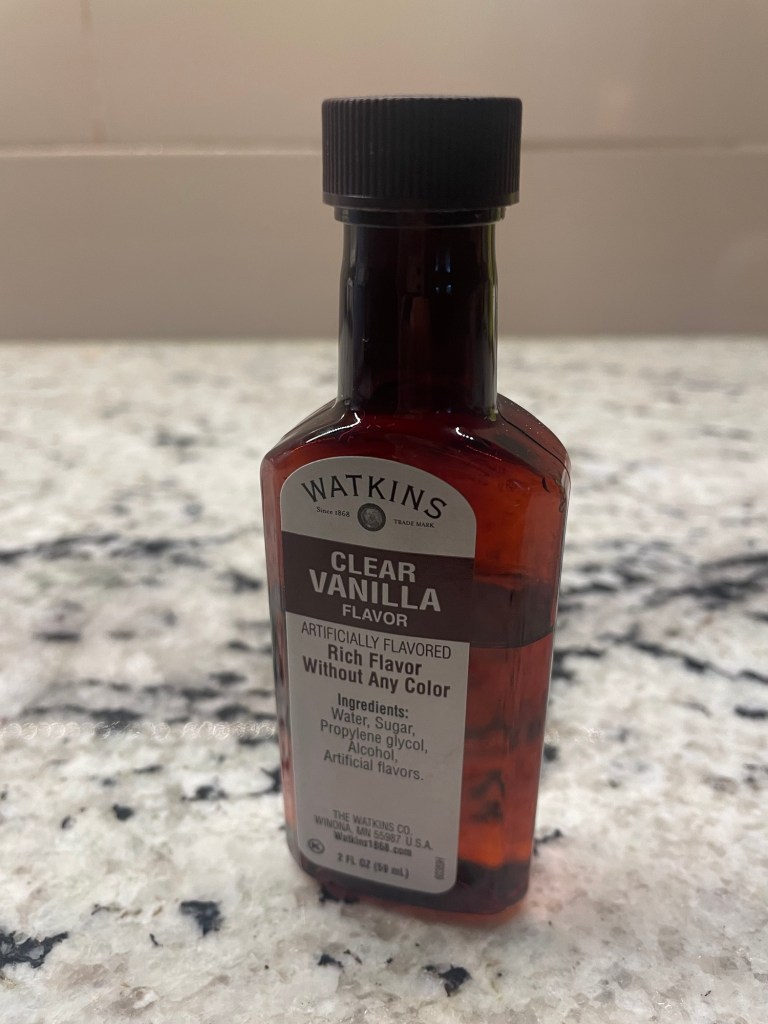 - Vanilla. I never measure, although I eyeball a tablespoon or so