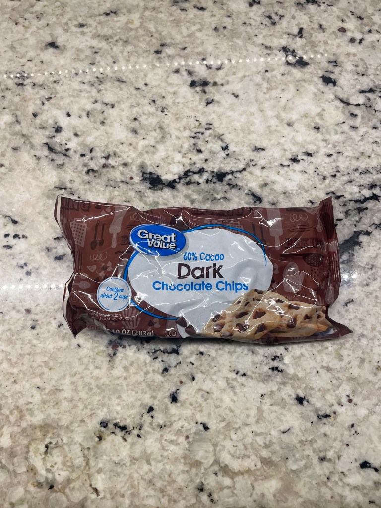 - Whole package (10oz) dark chocolate chips (milk chocolate would work too I just prefer dark)