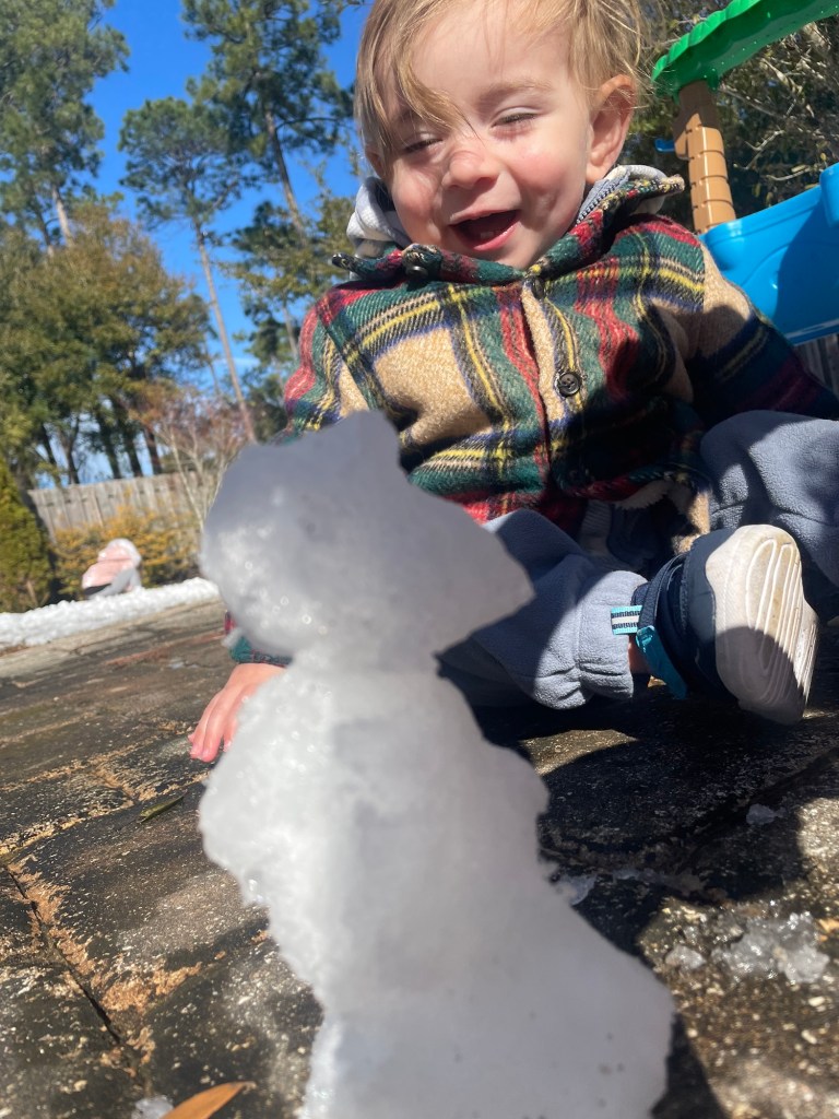The older two were excited to taste the sweet January snowflakes. Caeden was determined to make a snowman and Evvy had plans to make a snow angel. And so they did.