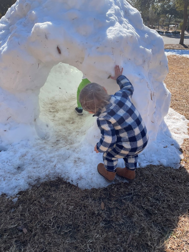 On the fourth day some people started heading back to work. I decided not to risk it (a Monday problem). We played outside again, went for a walk, found an igloo!, and then . . . got a small case of seasonal depression. It was so sad to see the delightful snow melt away…