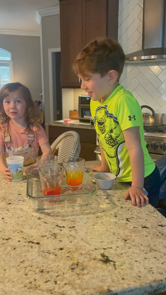 I remembered seeing this done on Ryan’s World, and I think it turned out pretty good for us. Caeden went ahead with his own versions afterward and he did great!